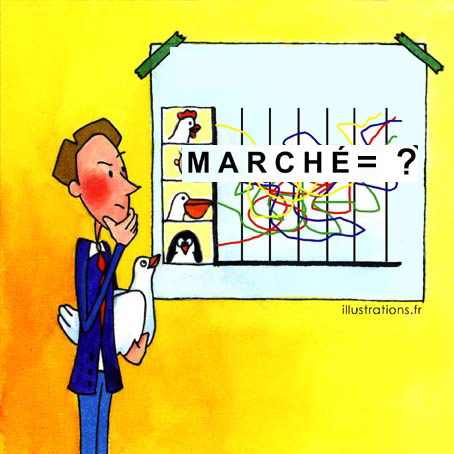 l'ensemble des données chiffrées relatives à un produit ou un service, plus ou moins segmenté (ex : le marché des yaourts allégés, le marché de l'automobile).